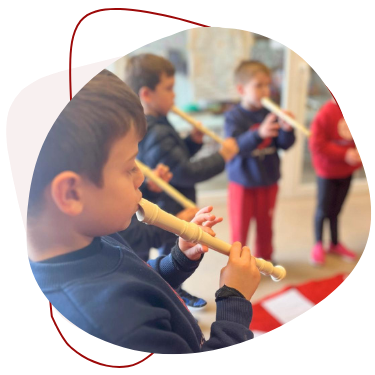 Nessa etapa a curiosidade científica se aflora, o universo, os planetas, os bichos tudo passa pelo olhar da troca com colegas e equipe. A partir do Jardim A os alunos iniciam o estudo da flauta doce e participam do coral com a professora de música.